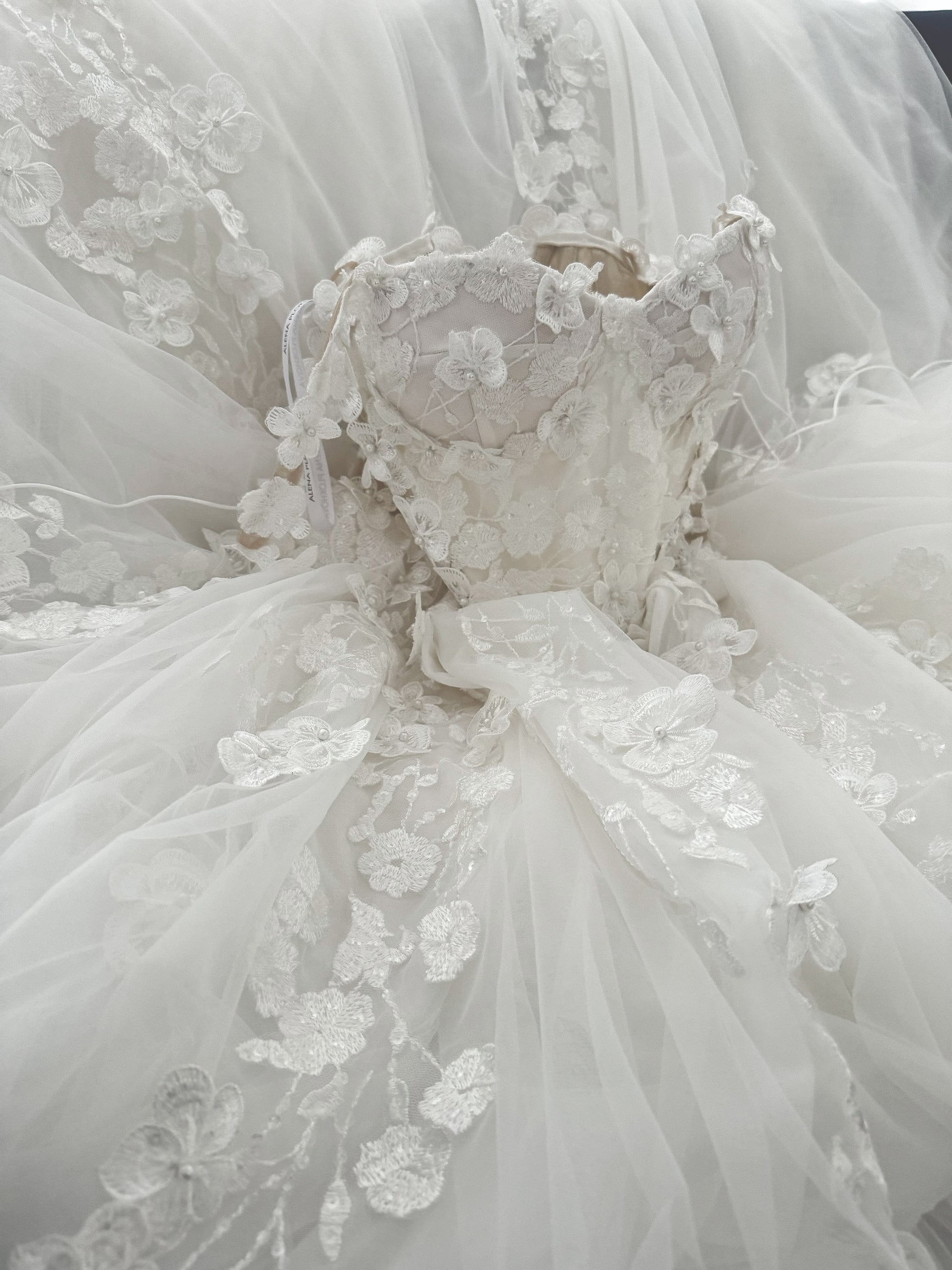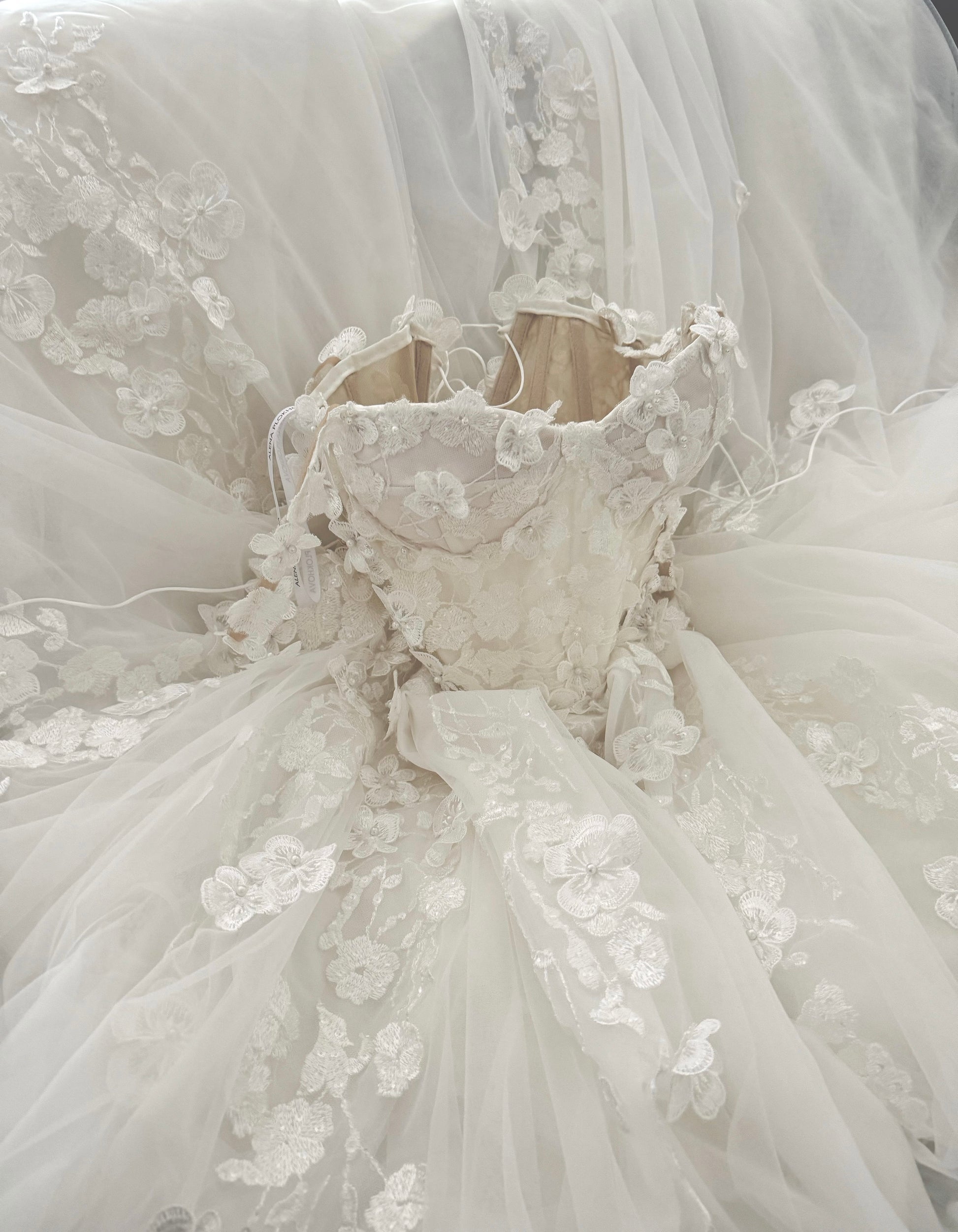 - Materials: Italian tulle, lace, 3D flowers, satin (polyester).