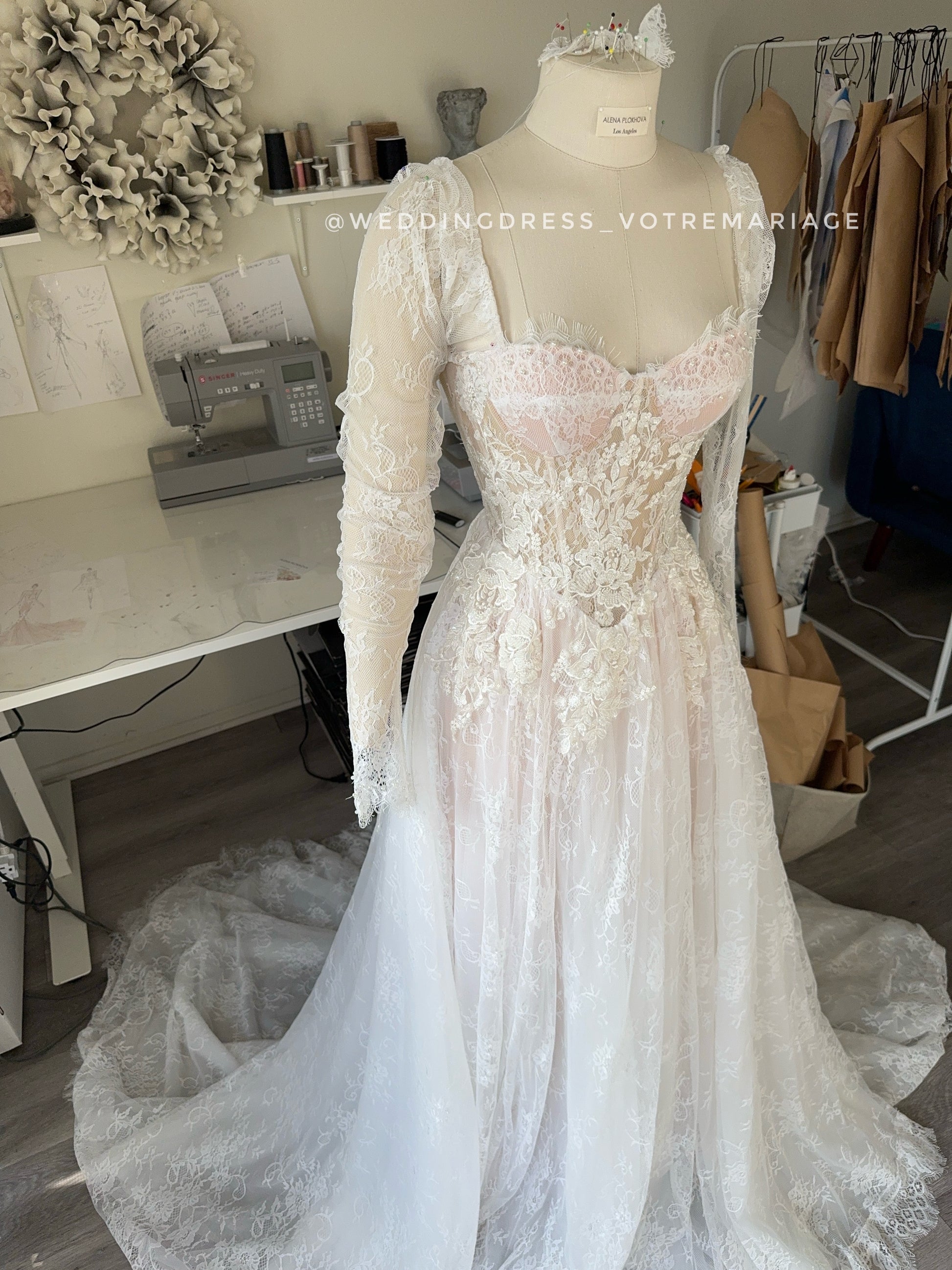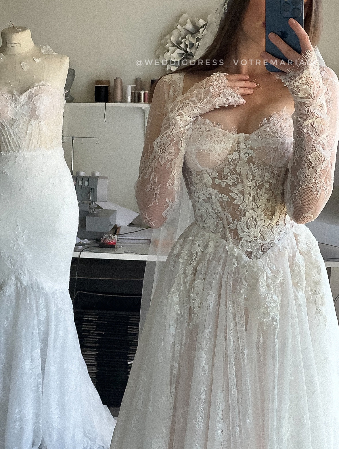 Blanca Limited Edition/ A-line lace wedding dress with sleeves and long train