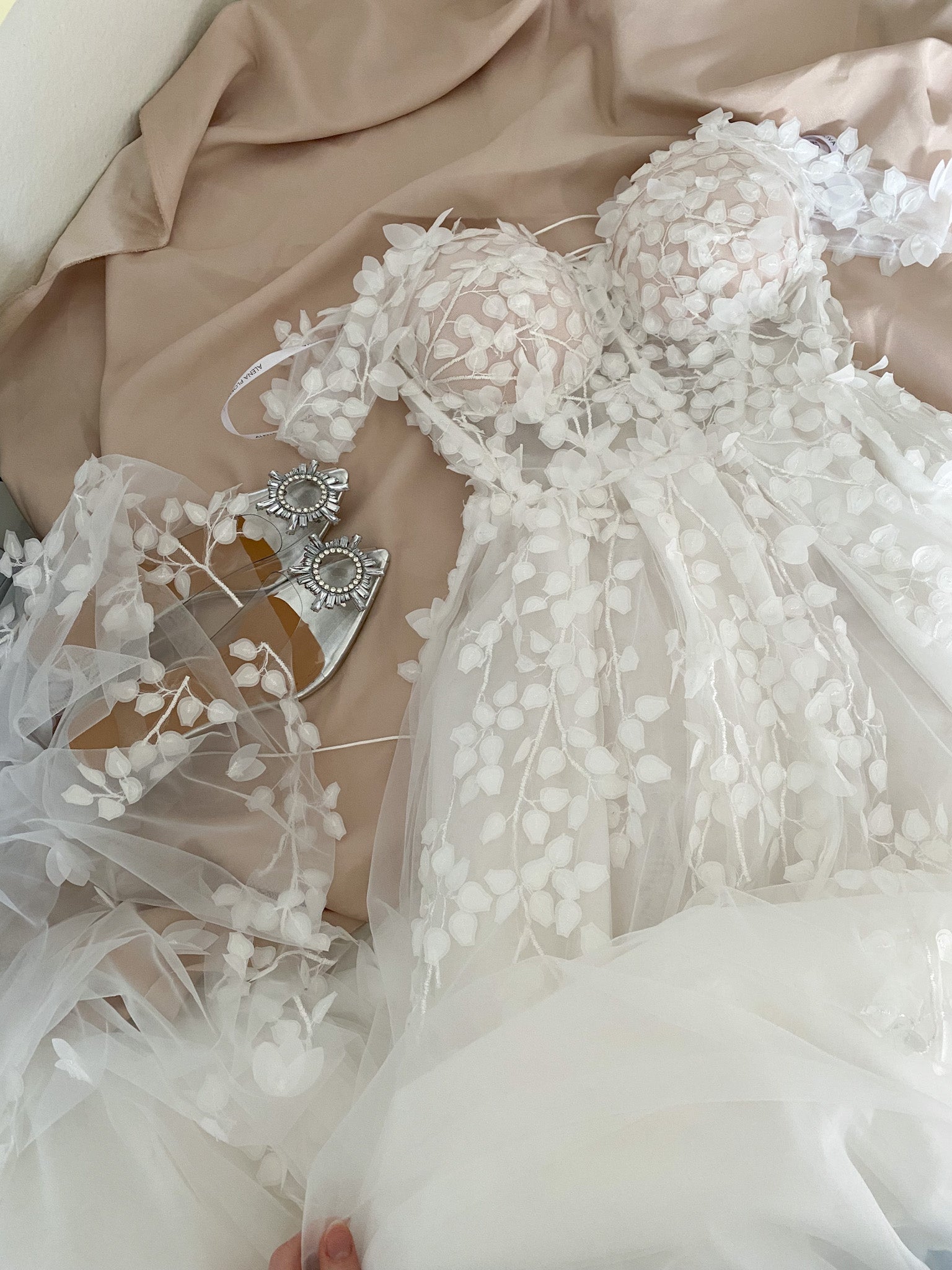 Each of our wedding dresses consists of hundreds of days of handmade work and several weeks of hand embroidery. Each of our wedding dresses is born absolutely original and unique.