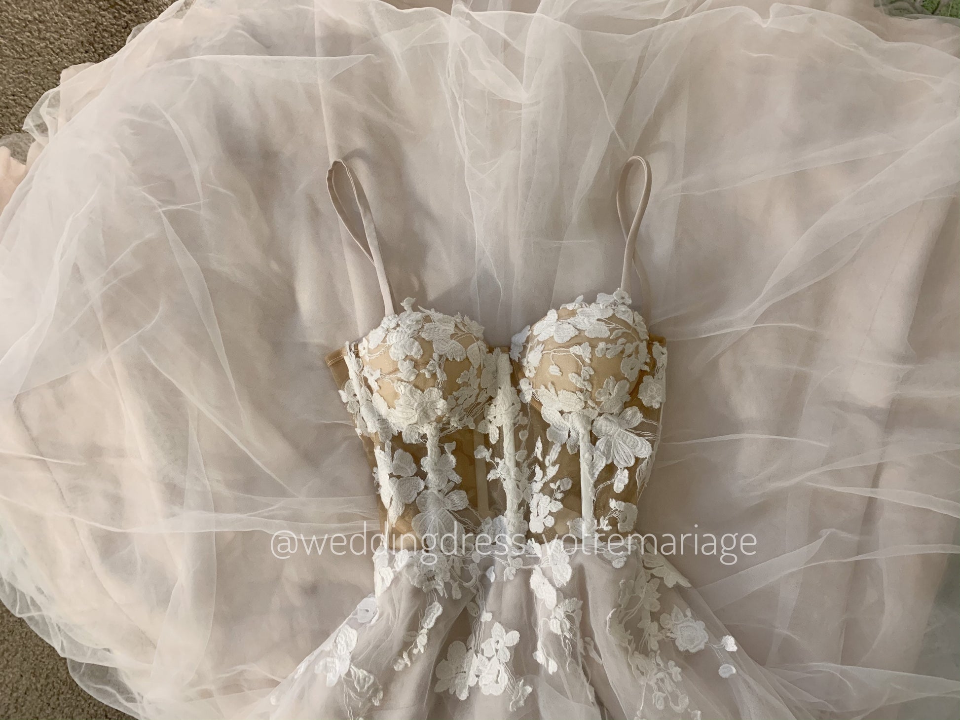 Sara is a simple and elegant dress made from three layers of Italian tulle and French lace. The dress is hand embroidered with lace. This is completely handmade.